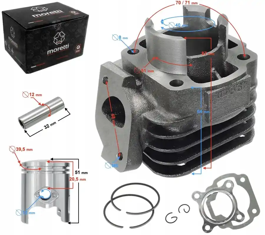 Cylinder Moretti do skutera 2T 50cc 1PE40QMB sw.12mm Niska cena