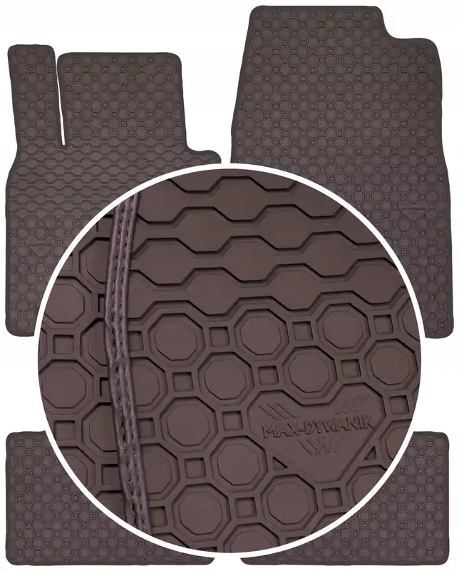Dywaniki zostały wyposażone w stopery, dzięki czemu można zabezpieczyć je przed przesuwaniem się podczas jazdy, do tego kompletu dołączamy stopery okrągłe typ AV lub OWALNE, zamontowane na dywanikach przednich.