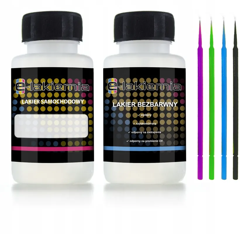 Lakiery dorabiane na podstawie głównej receptury – w ofercie lakiery akrylowe, metaliczne oraz perłowe.