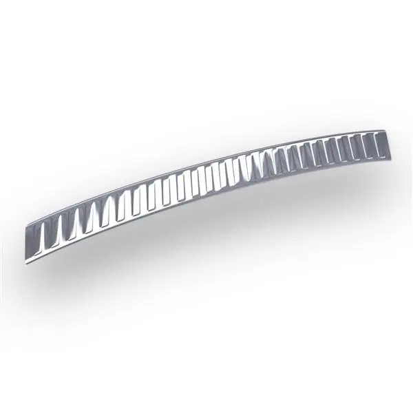 - Srebrne dedykowane nakładki na zderzak ze stali kwasoodpornej tłoczone są w precyzyjnie zaprojektowanych matrycach wytwarzanych przez obrabiarki CNC i wycinane przy użyciu najnowocześniejszego lasera światłowodowego, co gwarantuje ich doskonałe dopasowanie do tylnego zderzaka danego auta.