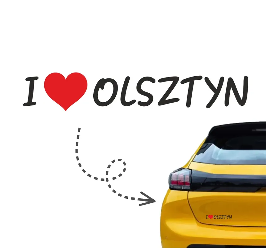 Naklejka na samochód „I Love Olsztyn”.