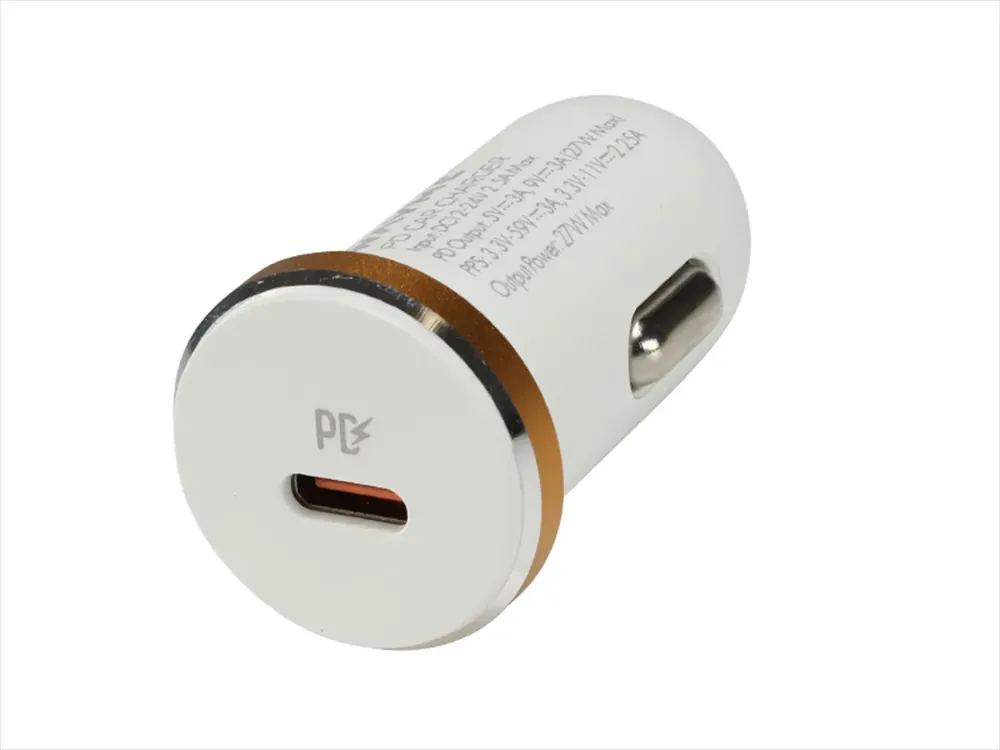 Ładowarka samochodowa do gniazda zapalniczki z portem USB C obsługującym technologię Power Delivery. Inteligentny chip identyfikuje urządzenie, abyzapewnić najszybsze możliwe ładownie. Maks. 27W PD.
