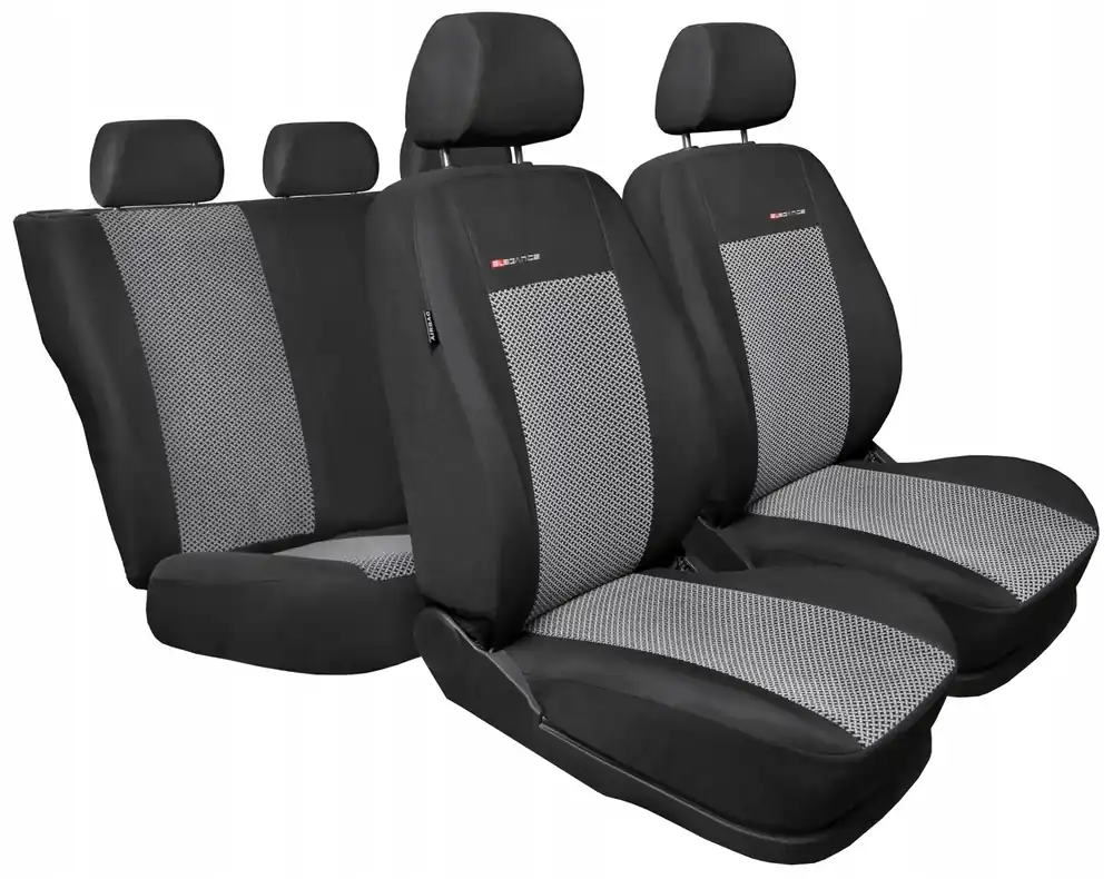 Pokrowce PRACTIC wykonane są z optymalnej jakości materiałów tapicerskich w części bocznej pokrowca w kolorze czarnym, oraz materiału żakardowego w części środkowej, o wzorze podobnym do oryginalnych tapicerek foteli.