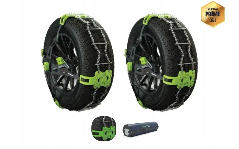 • Sprężyny napinające ograniczają dynamiczne unoszenie się łańcucha ponad powierzchnię opony i umożliwiają idealny montaż na kołach o różnych rozmiarach.