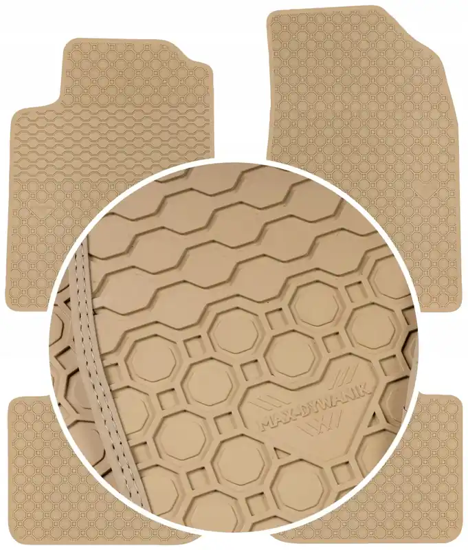 - Spodnia warstwa dywaników zabezpieczona małymi wypustkami (kolcami), która zabezpiecza dywaniki przed przesuwaniem się w samochodzie