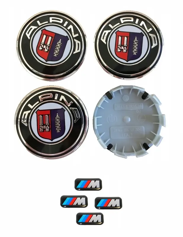 Zamów teraz DEKIELKI KAPSLE BMW ALPINA 68mm + NAKLEJKI M POWER 17mm x 9mm