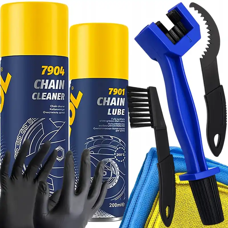 ZESTAW DO CZYSZCZENIA ŁAŃCUCHA MOTOCYKLOWEGO MANNOL SMAR ZMYWACZE SZCZOTKA